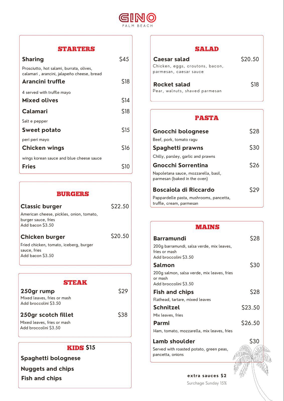 GINO’S BISTRO MENU