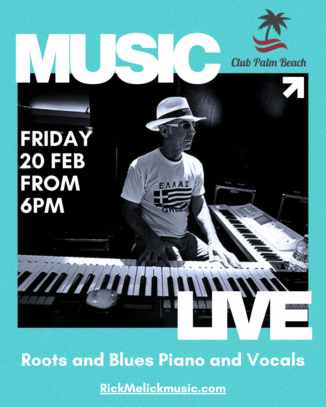 Join us for an unforgettable night of Roots & Blues Piano and Vocals with the talented Rick Melick.
