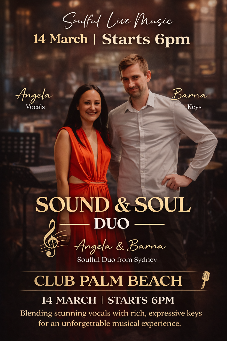 Join us for an elegant evening of live music with the Sound & Soul Duo featuring the stunning vocals of Angela and the rich, expressive keys of Barna.